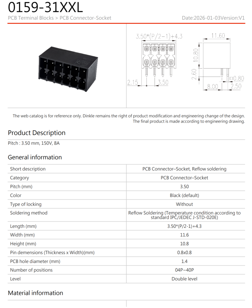10 Pieces - 0159-3108 DINKLE Shrouded Terminal Block Header 8 Position 3.50mm Pitch Double Level TERMBLK-8