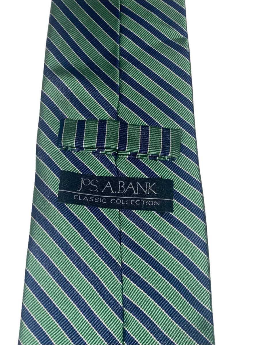 Jos. A. Bank Classic collection, Green Navy Stripe long Silk Tie. 62x3.5 Inch