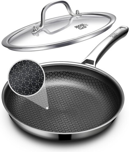 PROFESSIONAL PERFORMANCE WITH EVERYDAY CONVENIENCE, D3 Nonstick tri-ply is fully bonded to the rim for fast even heat. The high-quality PTFE nonstick brings a long-lasting and easy release to cook with less fat.