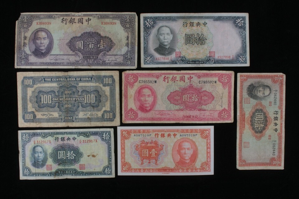 1936-1942 China 7-Notes WW2 Set // Bank of China & Central Bank // 1-100 Yuan