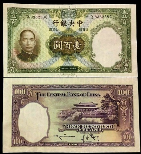 1936-1942 China 7-Notes WW2 Set // Bank of China Central Bank // 1-100 Yuan
