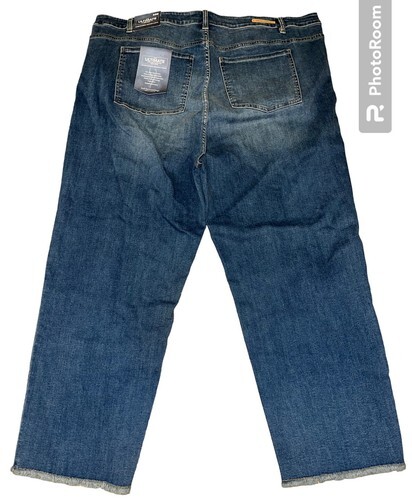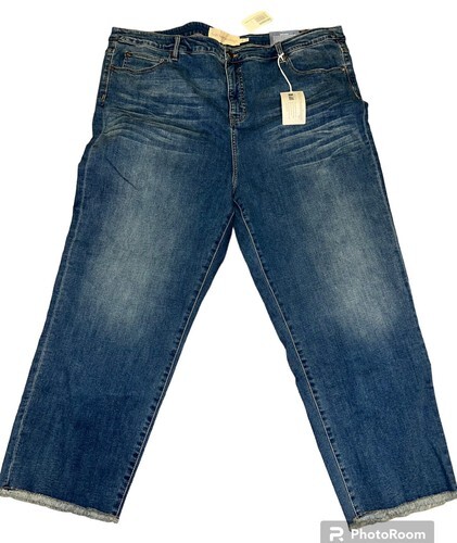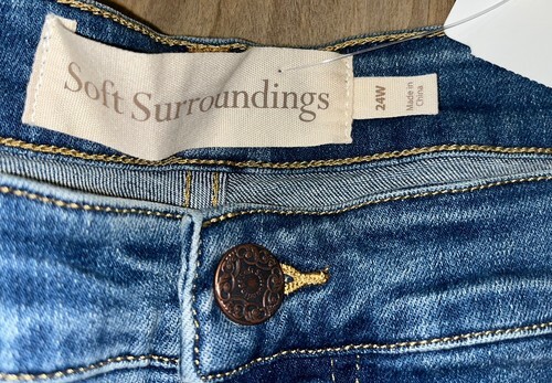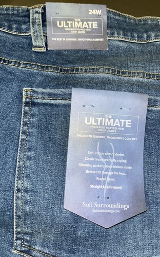 This listing is for a pair of NWT Soft Surroundings Womens Jeans Ultimate High Rise Frayed Hem Crop Size 24W.