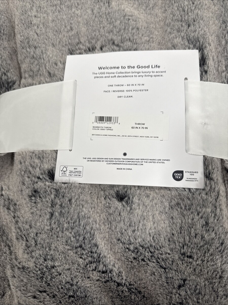 UGG Mammoth Gray Tipped Oversized Throw Blanket 70 in. Faux Fur ~New~