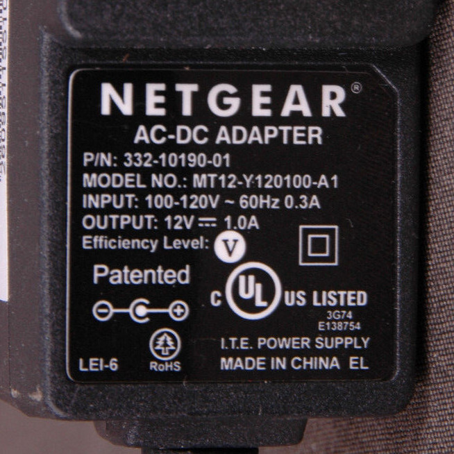 Netgear 332-10190-01 - AC Adaptor- 12V DC 1.0A