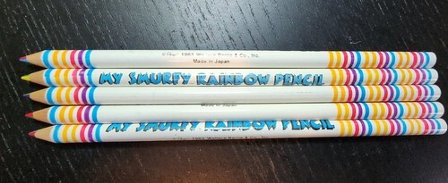 Smurfs Vintage 1983 MY SMURFY RAINBOW PENCIL Wallace Berrie & Co Japan Lot of 5