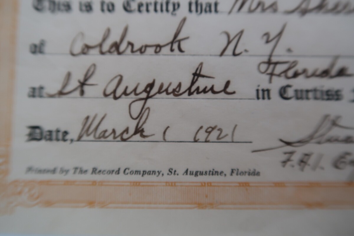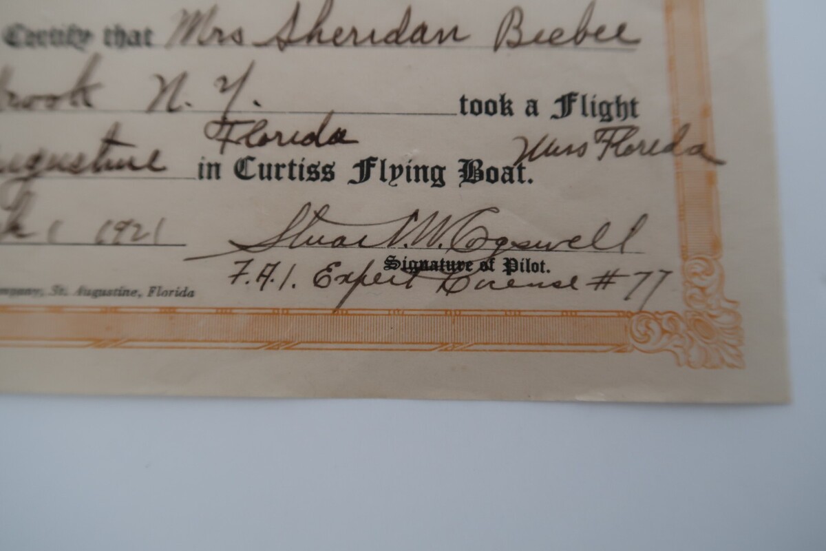 Antique Curtiss Flying Boat St. Augustine FL 1921 Autographed Stuart W Cogsworth