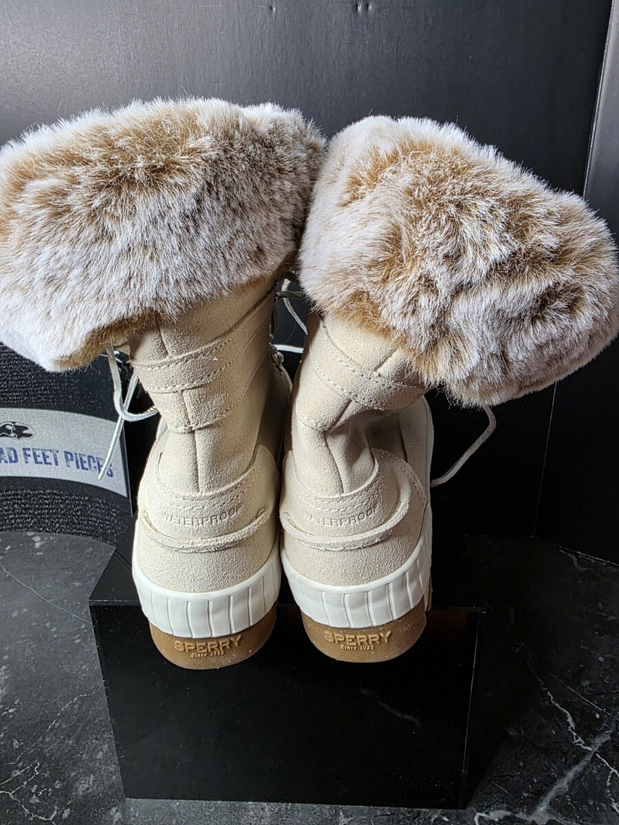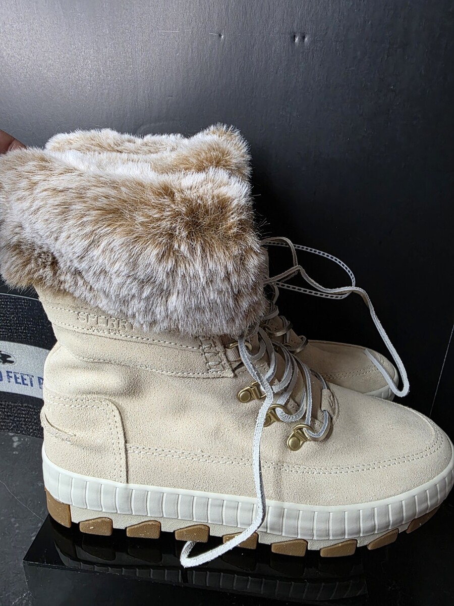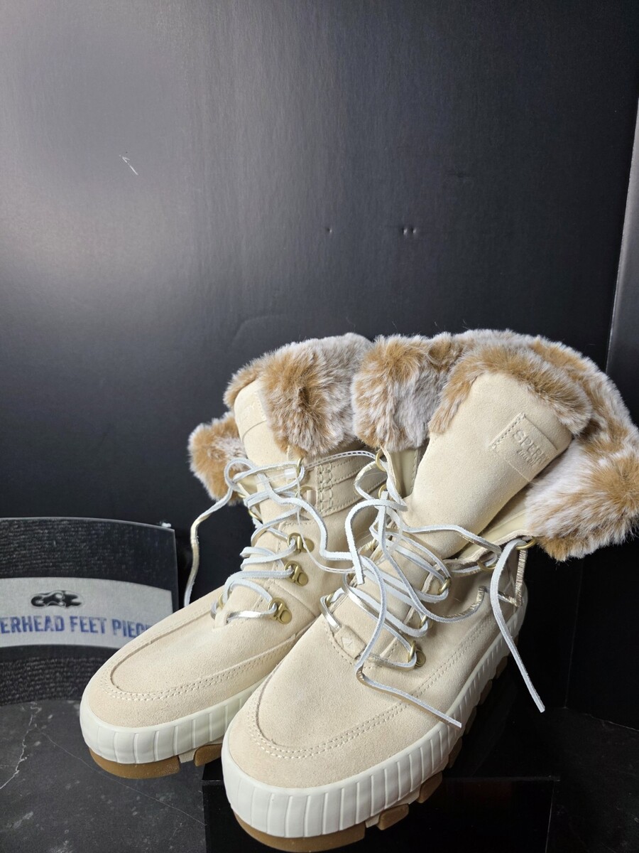 Sperry Women’s Winter Boots Faux Fur Lined Lace-Up Ivory Cream NEW