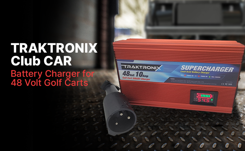 1 - New Traktronix brand Club Car Battery Charger with digital display, Power Cord and Standard 3 pin round plug