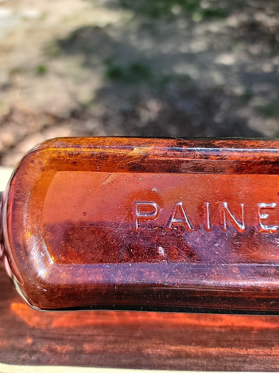 NICE AMBER PAINE'S CELERY COMPOUND BOTTLE APPLIED LIP 1880'S ERA DUG