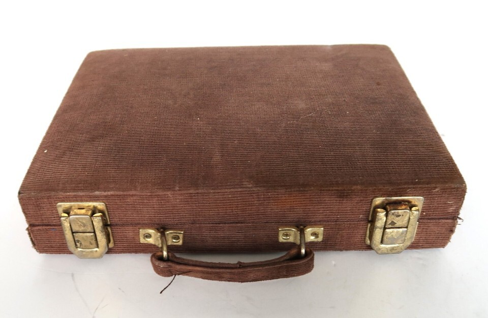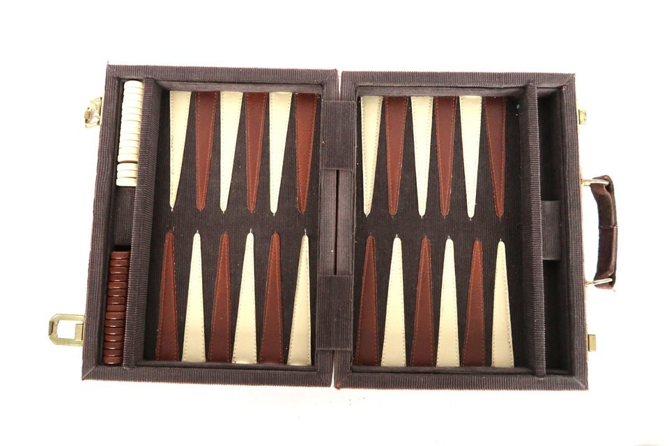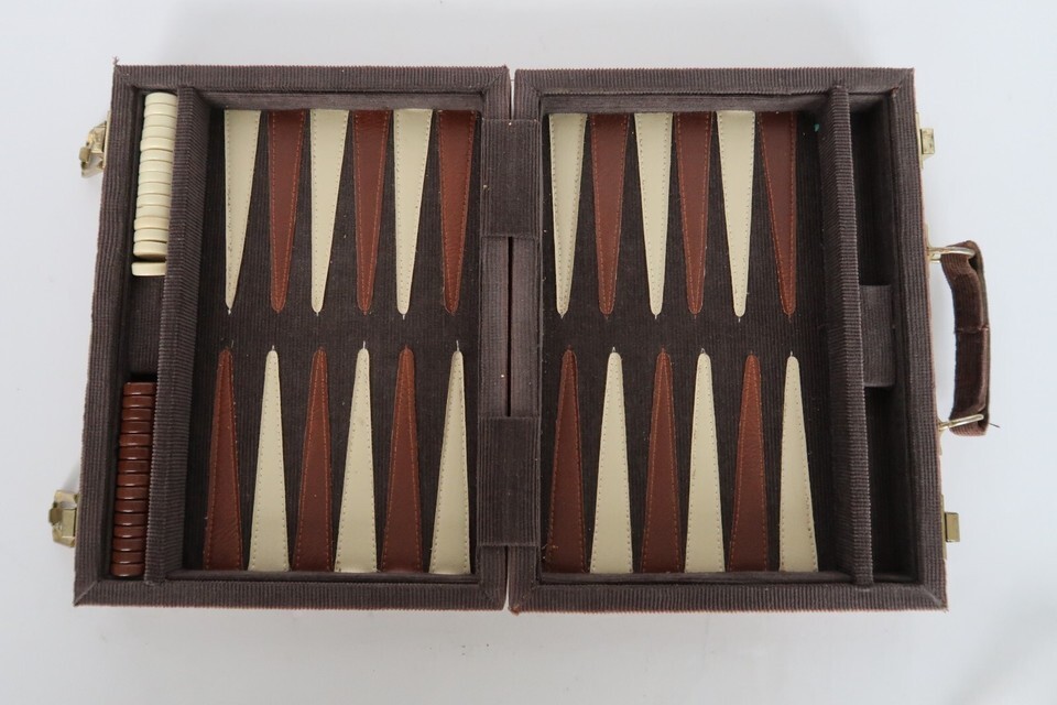 Vintage travel backgammon set courderoy cover magnetic pieces