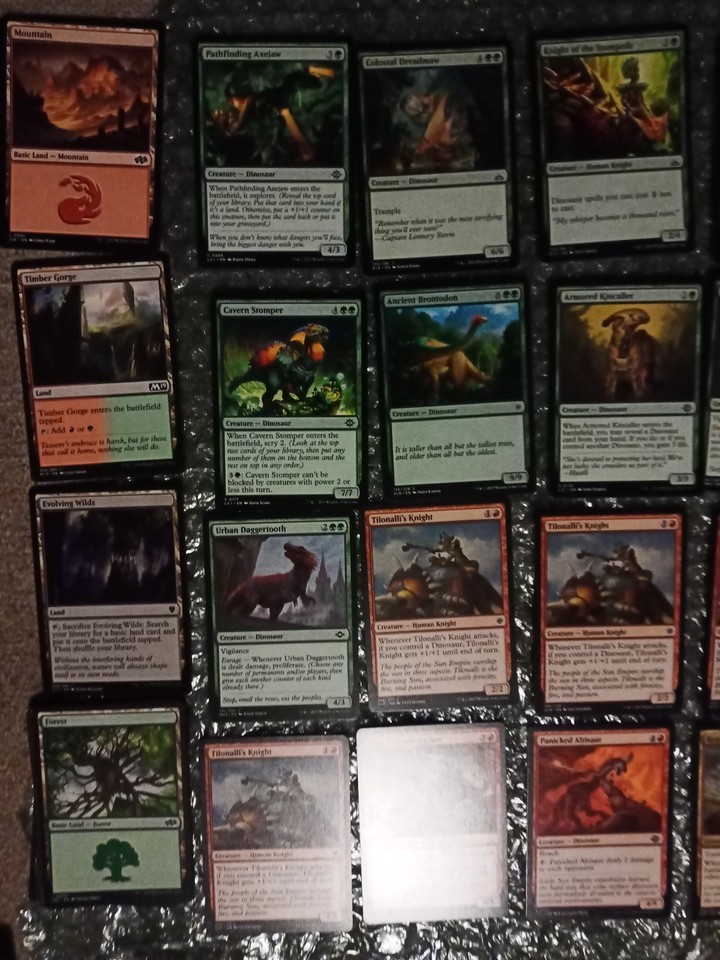 Magic The Gathering Green Red Dinosaur Deck 60 Cards. Concentrates On Dinosaur Synergy Attack, Combo spells and enchants with trample and buffs. Mana generation and find also