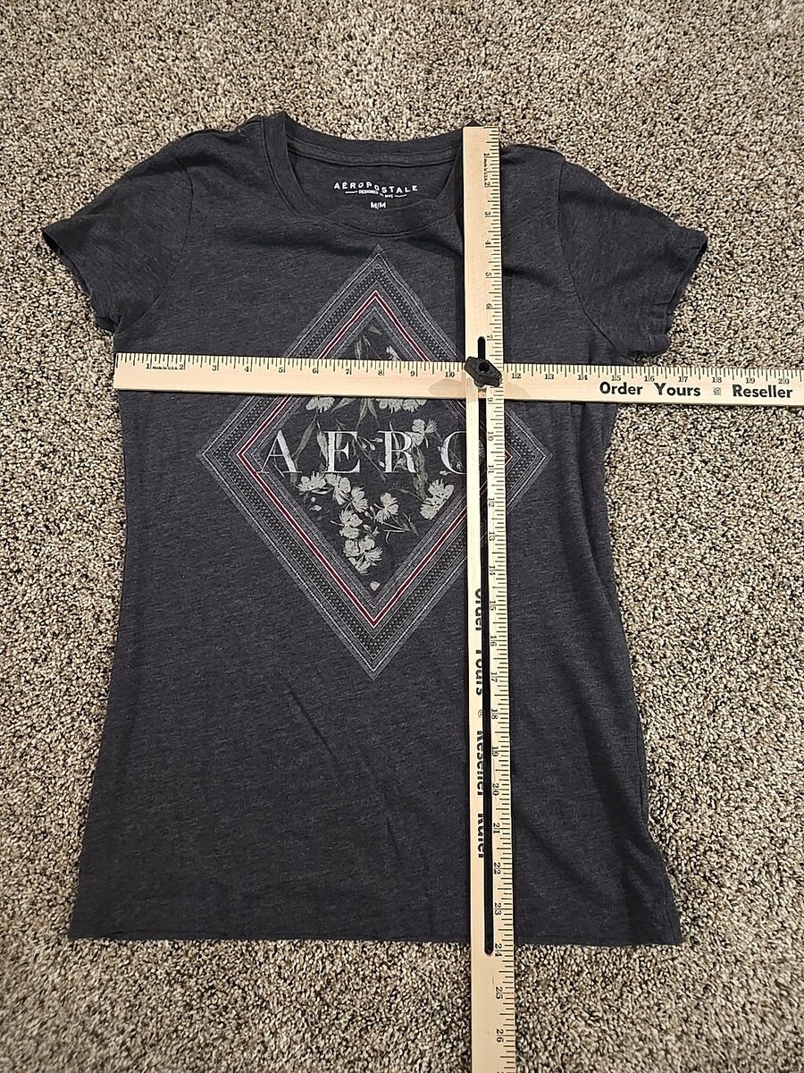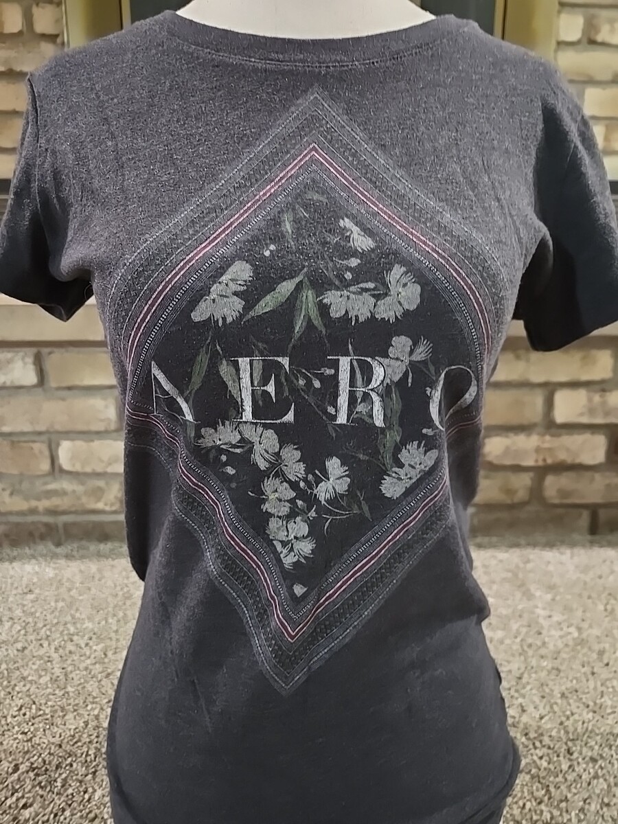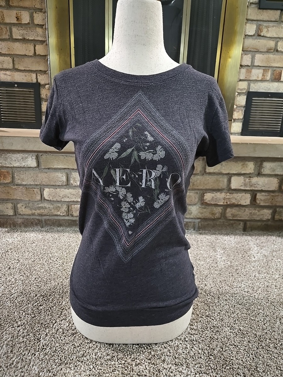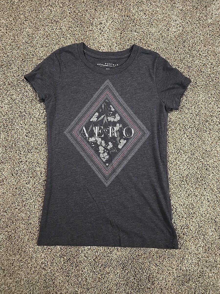 Aeropostale Aero Floral Graphic Print T-shirt Womans Sz Medium Charcoal Gray