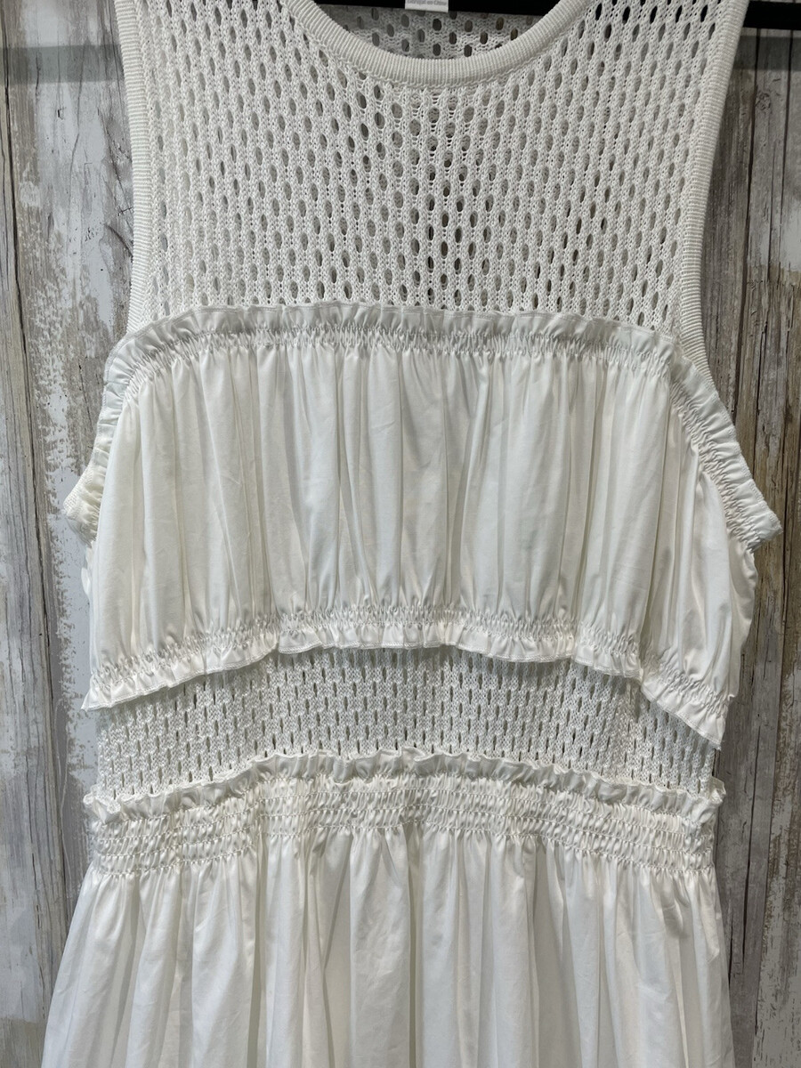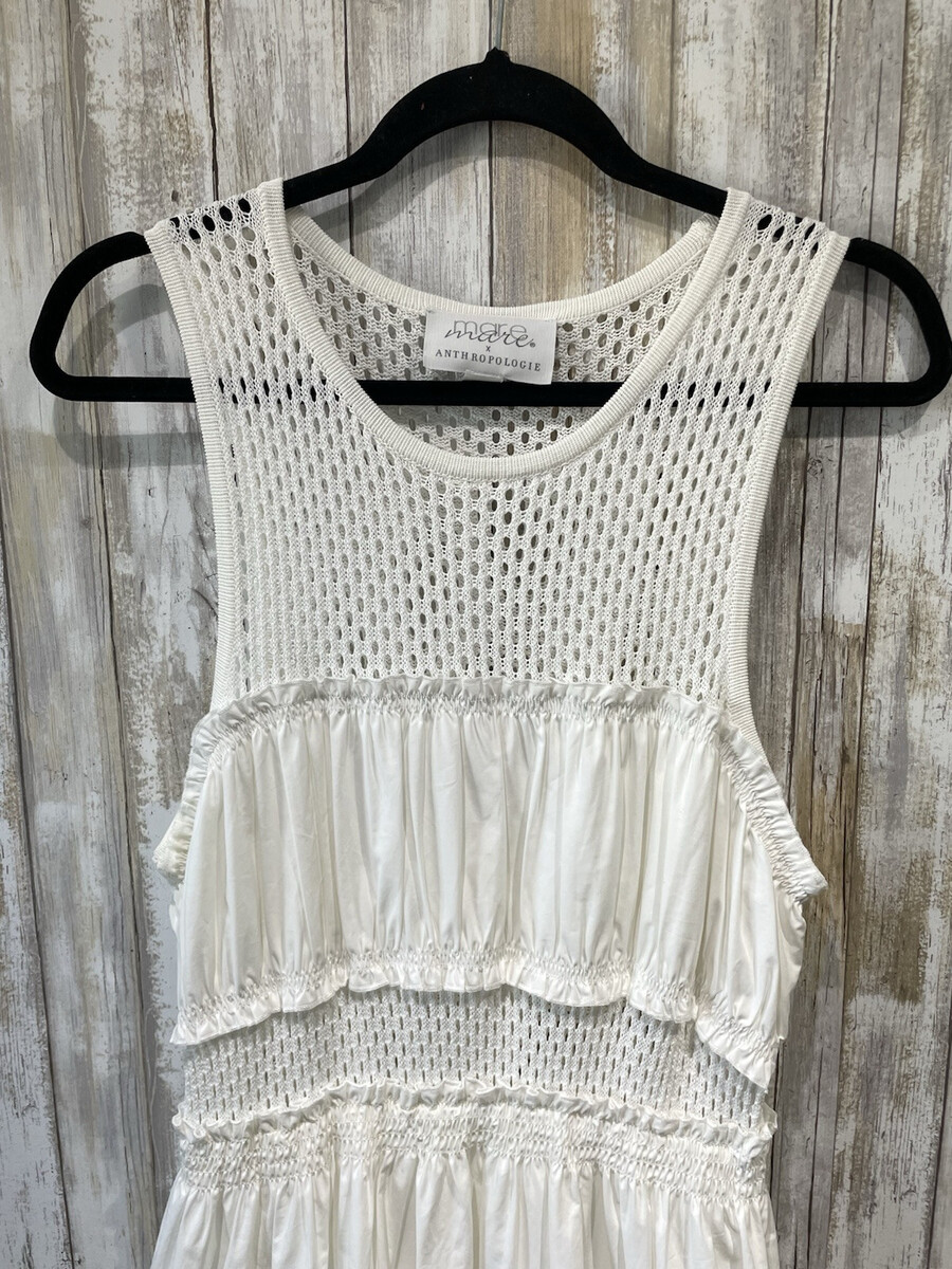 Mare Mare X Anthropologie Maxi Dress Womens L White Smocked Tiered Sleeveless B70