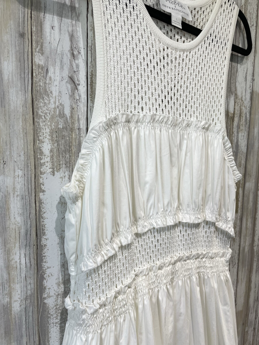 Mare Mare X Anthropologie Maxi Dress Womens L White Smocked Tiered Sleeveless