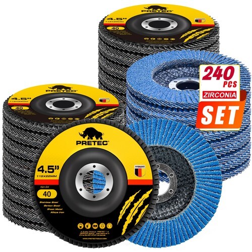 Available in sizes to fit today's most popular right angle grinding machines, abrasive flap discs are a great choice to sand, grind and remove rust and paint from metal surfaces. These flap wheels are used for removing large amounts of material and for shaping or smoothing wood, metal, and masonry. The ultra-tough zirconium oxide grain also makes these discs perfect for more aggressive applications like removing welds and finishing of ferrous and non-ferrous material. Designed for right angle grinder applications ranging from heavy stock removal to surface blending.