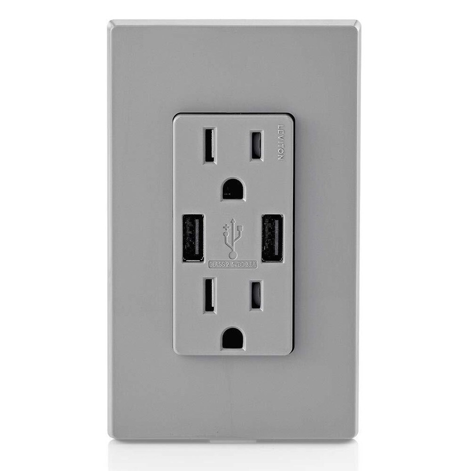 Leviton Decora 15 amps 125 V Gray Outlet and USB Charger 5-15R