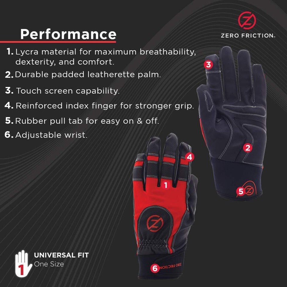 Zero Friction Men's Universal-Fit Performance Work Gloves, Red