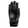 Universal compression-fit one size technology, Reinforced index finger for stronger grip, Terry cloth sweat wipe, High dexterity and breathability, Touch screen capability, Padded knuckle and palm, Leather palm for maximum grip, Rubber pull tab for easy on off; Water repellent material