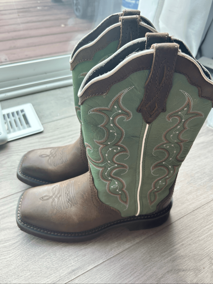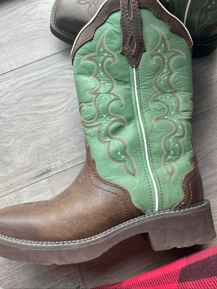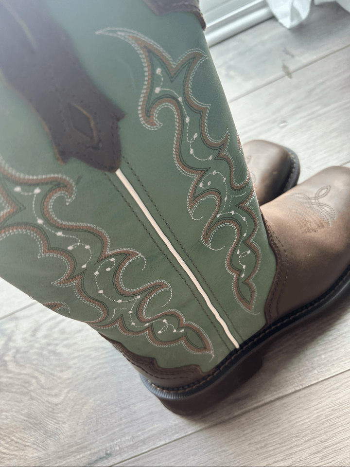 Justin Women's Raya Cowhide Gypsy Boots 12 in size 8.5B green and brown