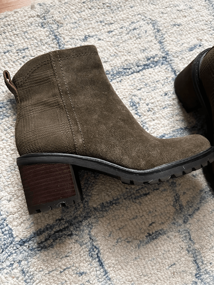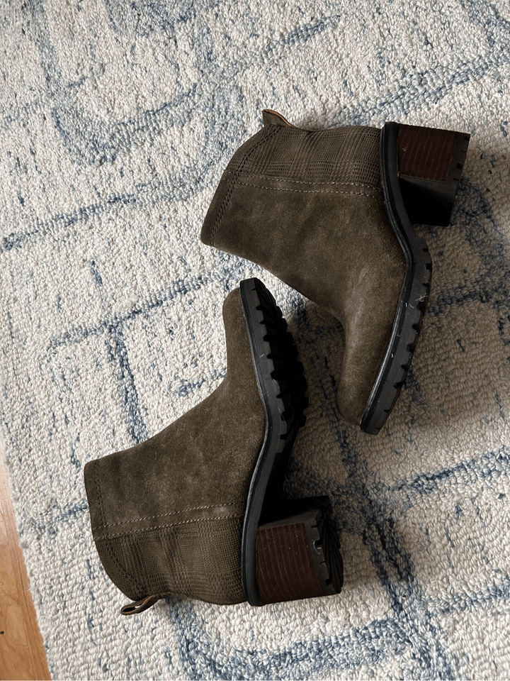 Zodiac green chunky heels boots suede size 7.5
