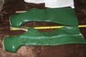 Beautiful boots size 7 1/2 green suede with a heel. The heel is above 2 1/2 to 3 inches. The whole boot is about 10 inches front back. The height of the boot is 8 inches.