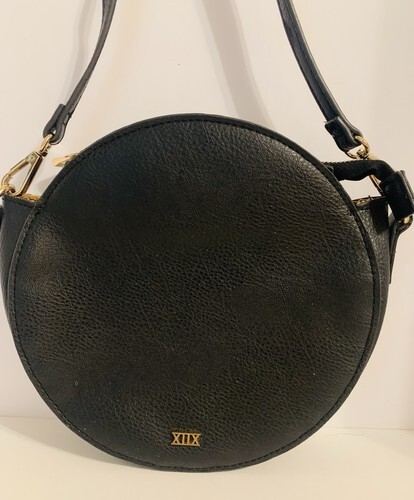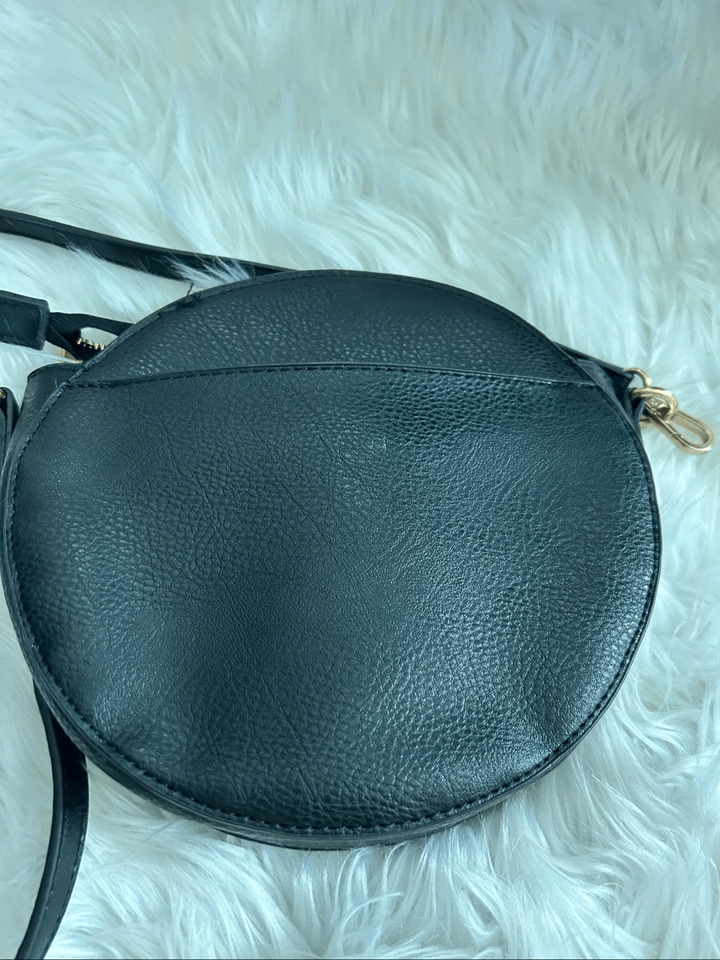 Collection XIIX Black Leather Pocket Adjustable Strap Round Crossbody Bag