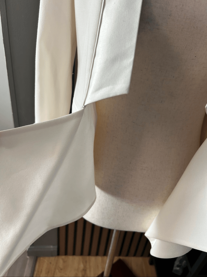 BCBG white stylish blazer short size xxs with silk like accent at the collar