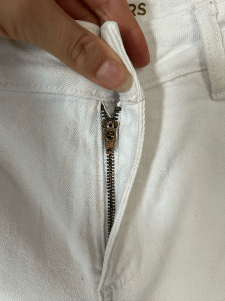 White skinny jeans size 8. Slight discoloration near zipper see pics can?t see it once the zipper is zipped
