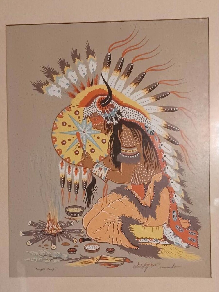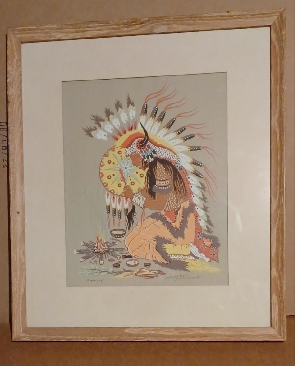 Woody Crumbo Prayer Song - Signed Silkscreen Framed Print