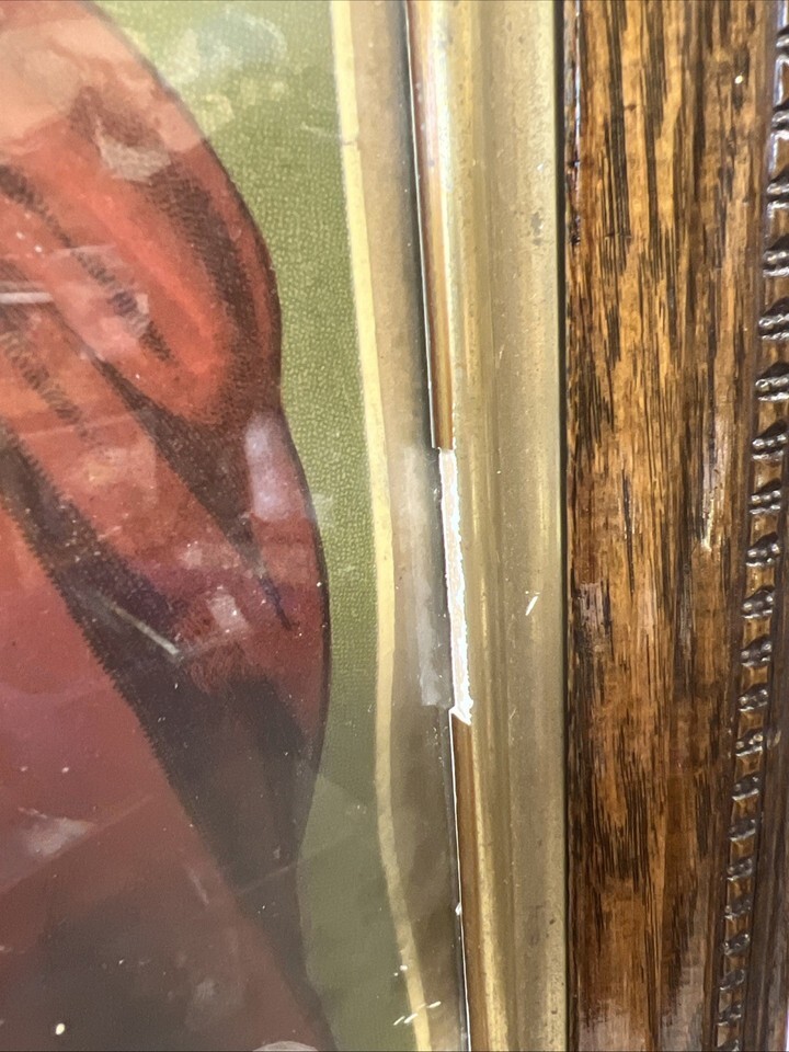 Note this is an old frame, it does have imperfections as I will try to note some of them in the photos. The glass could used to be cleaned from the inside, but I am not going to be taking it apart. I will leave that to the buyer. Very unique, very old, do not know age, but can tell from frame that it is older. due to the size of this, I cannot ship to Alaska or Hawaii.