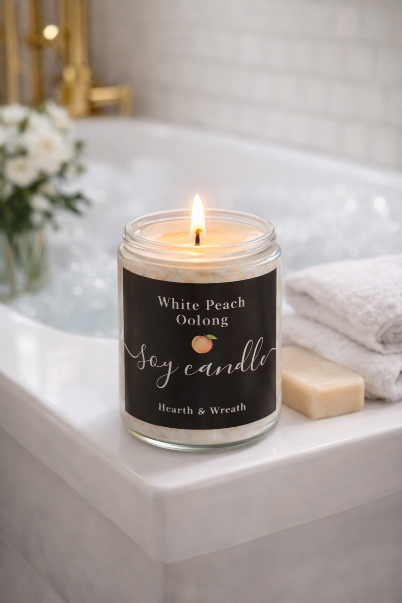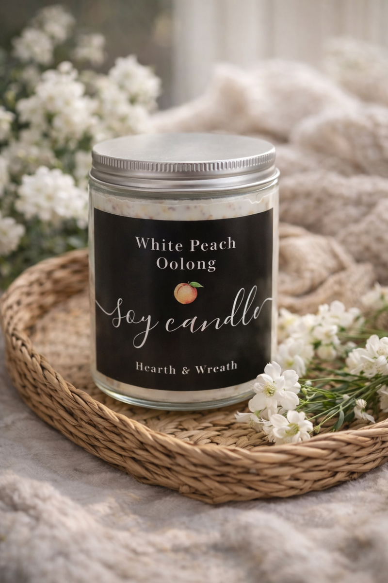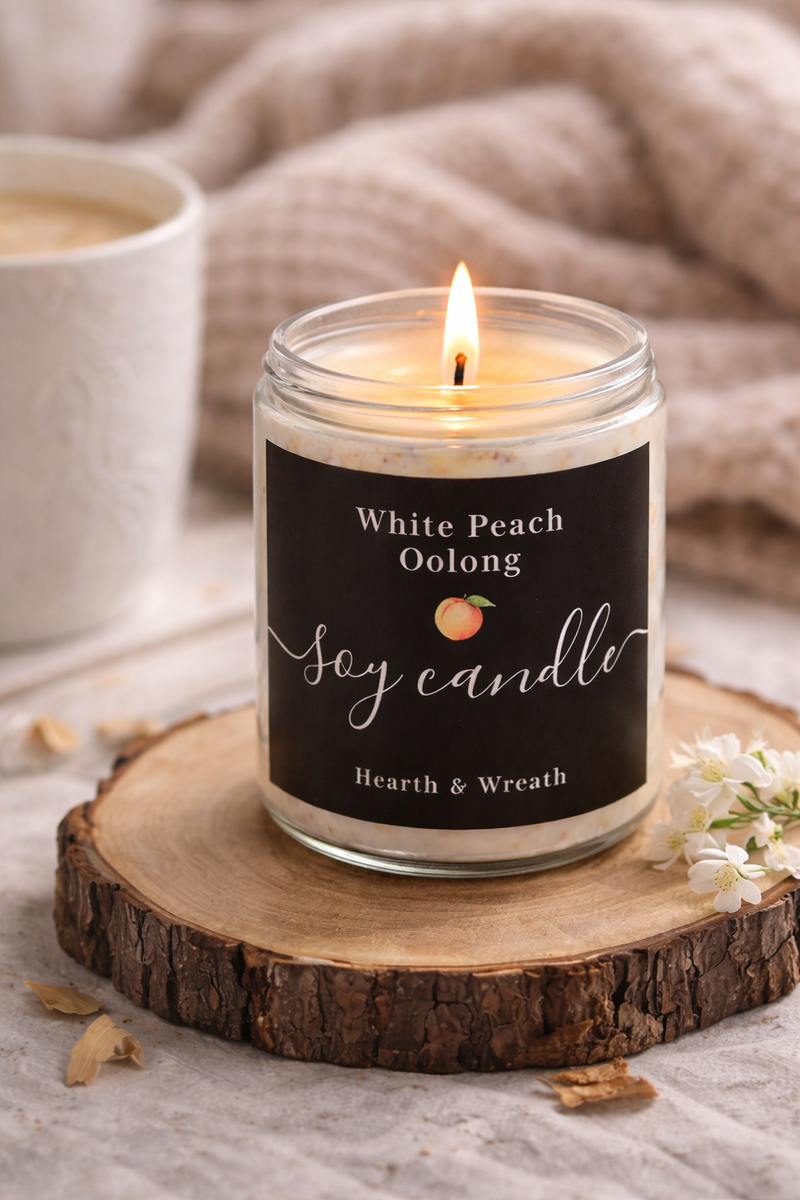 The fragrance blends sweet, juicy white peach with the smooth, earthy notes of oolong tea, creating a delicate aroma that feels both comforting and refreshing. Perfect for slow mornings, quiet evenings, or moments of peaceful reflection.