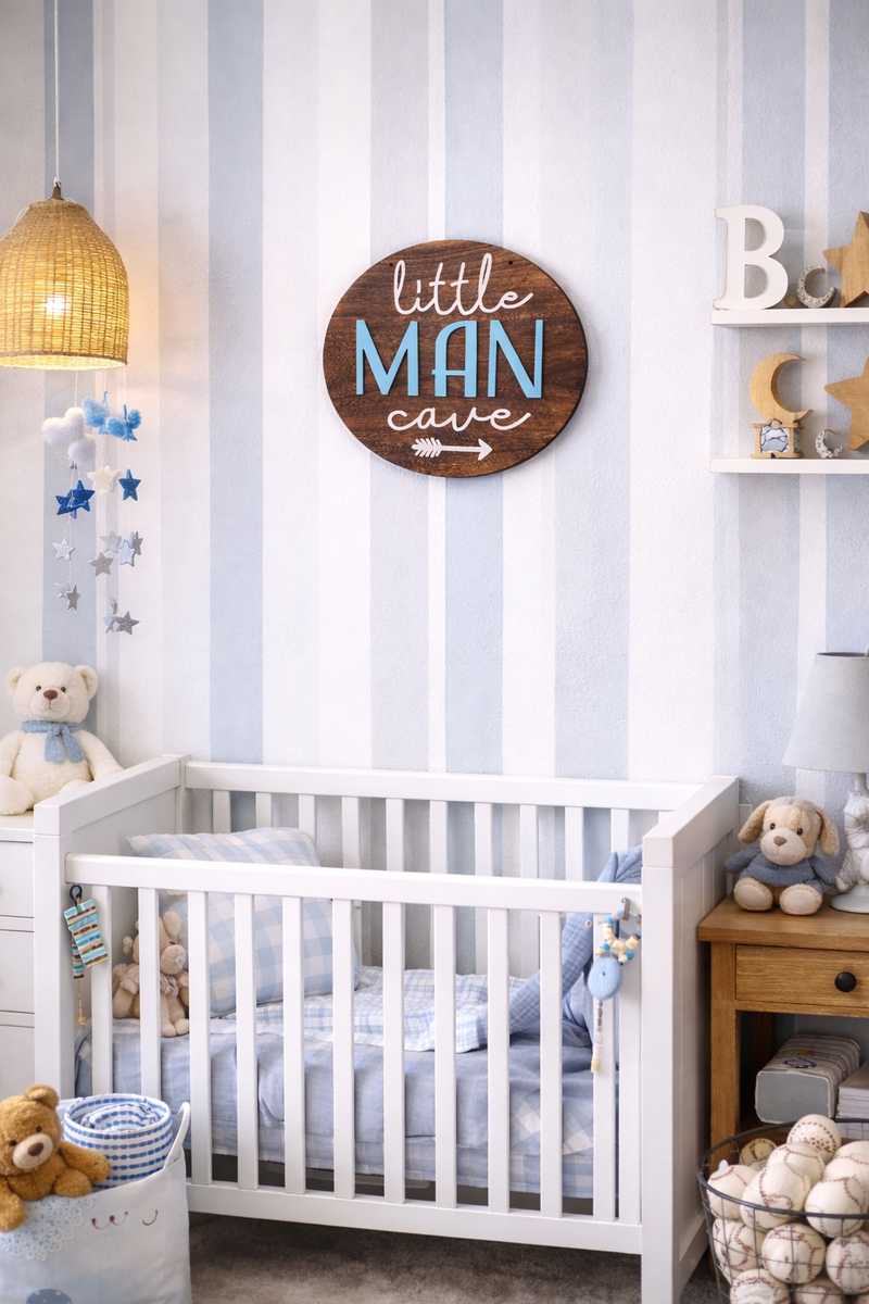 Rustic Farmhouse Wood Nursery Sign – “Little Man Cave”