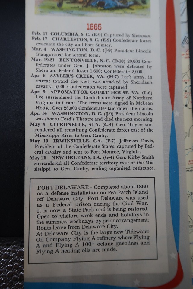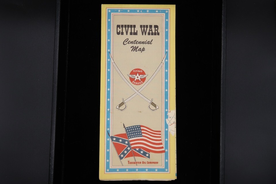 Vtg Civil War Centennial Map Flying A Service Tidewater Oil Company '61 Ephemera