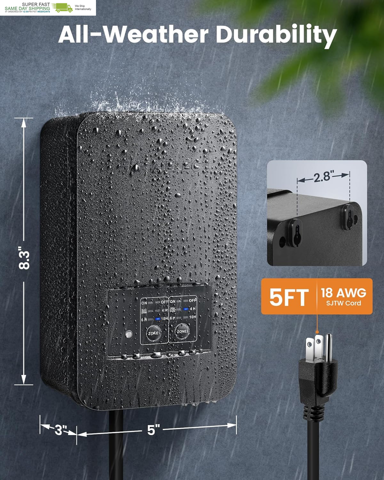 [Independent Zone Control] The 200w low voltage transformer features two independently controlled outputs; perfect for managing different outdoor lighting transformer systems; control your front and backyard lighting separately with a single landscape transformer