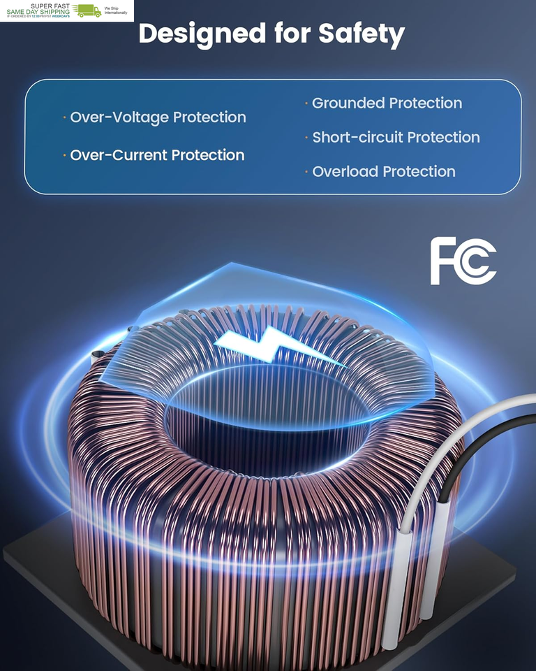 Adopts durable plastic housing and fully encased construction, the commercial grade transformer is moisture-proof, outdoor weatherproof and corrosion resistant, withstands years of use.