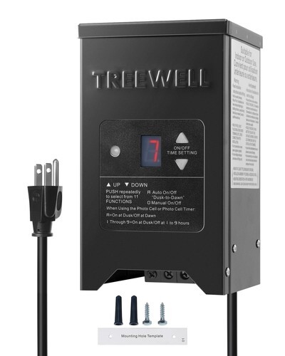 [Photocell Sensor Countdown Timer] This low voltage landscape light transformer automatically turns lights on at sunset and off at sunrise; With countdown timer setting, you can illuminate spotlights and deck lighting auto on at dusk , then off at 4, 6, 10 hours interval as needed; energy-efficient and convenient for daily use