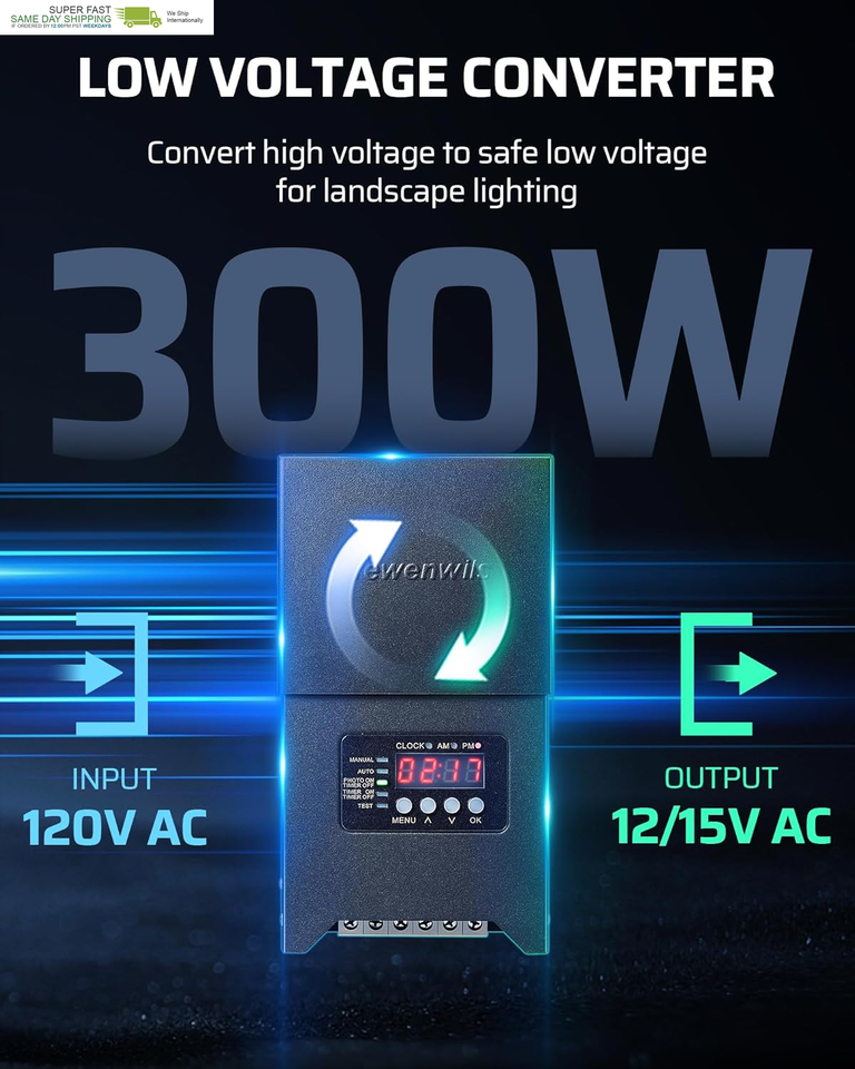 [Compatibility] Input 120VAC, output 12/15V AC safe voltage, with a maximum output power of 300W; this low voltage landscape transformer is ideal for a wide range of applications, including landscape lighting, outdoor lighting, patio lighting, garden lighting, and various low-voltage lights