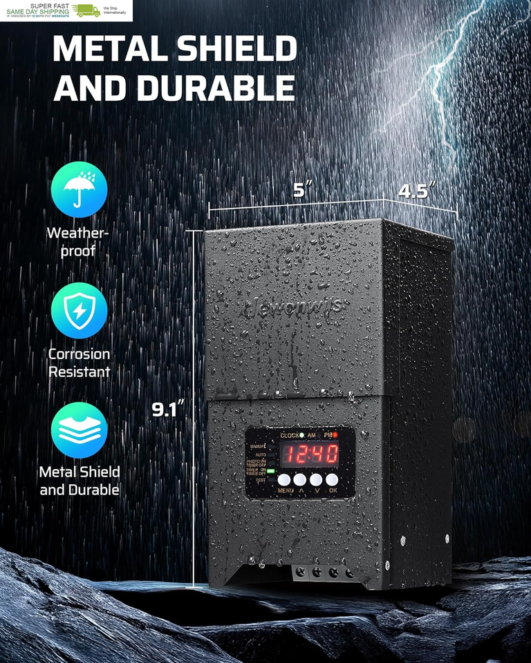 [Durable Weather Resistant] DEWENWILS outdoor low voltage transformers are perfect for outdoor lighting, this fixture revitalizes your yard with its sleek design; made of high-quality metal, it is sun-resistant, corrosion-proof, and built to last