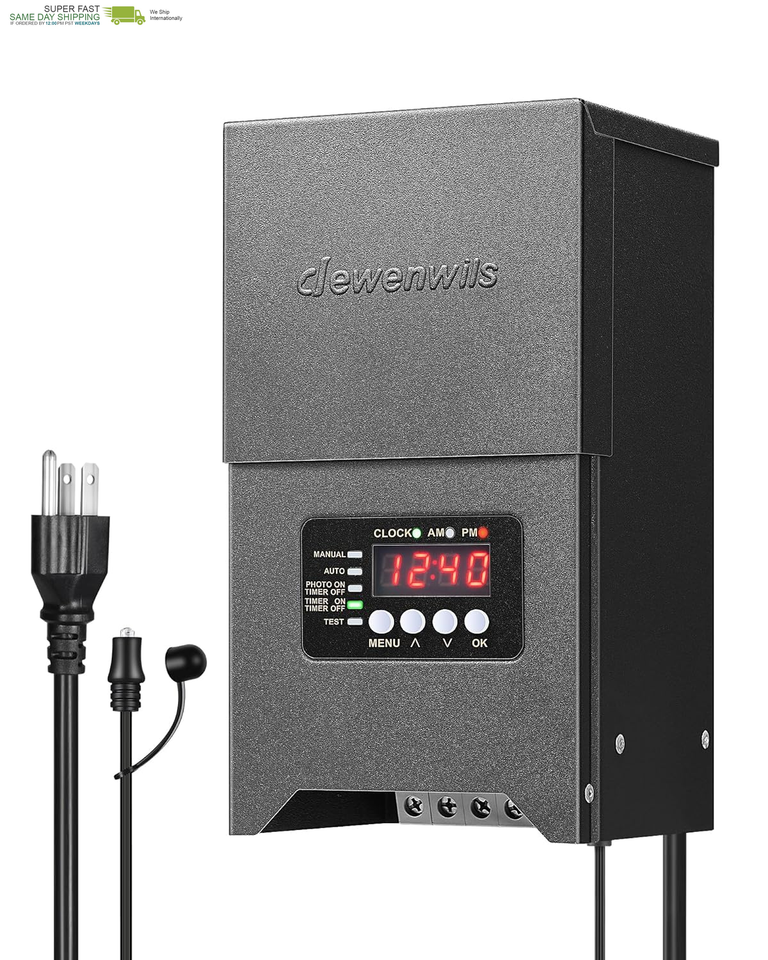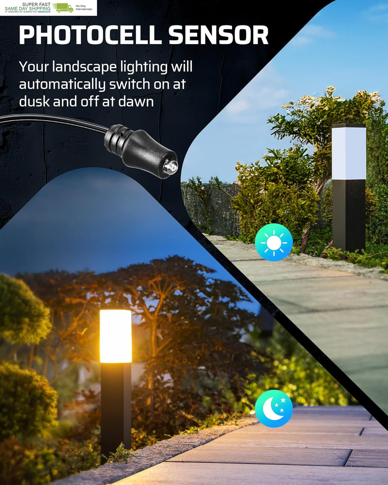 [Photocell Sensor Timer] Built-in detachable photocell sensor automatically turns the light on at dusk and off at dawn; equipped with a timer for customizable timing, dewenwils low voltage transformer can automatic on/off scheduling or timed activation/deactivation based on your preferences