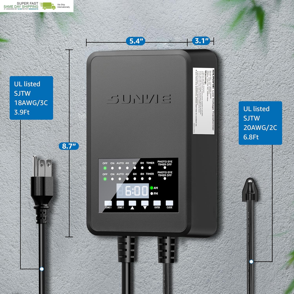 WEATHERPROOF DURABLE - The low voltage landscape transformer is durable and corrosion resistant. Long-term resistance to rain, snow, dust and corrosion, and built to withstand years of use whether installed indoors or outdoors. And we promise 12-month replacement warranty and lifetime after-sale support guarantee. Buy with confidence.
