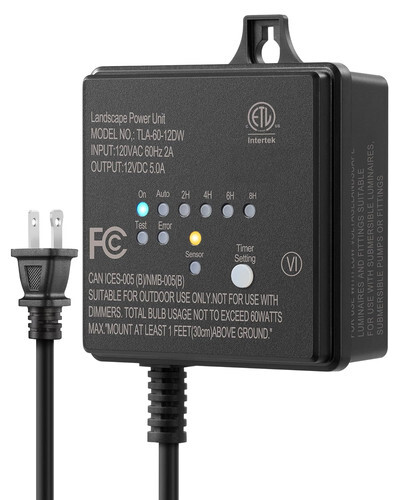 ?Photocell Sensor Countdown Timer?Built-in dusk-to-dawn sensor enables the outdoor landscape transformer to automatically turn on at dusk and off at dawn. It also features a photocell countdown timer function that allows it to turn on at dusk and automatically turn off after 2/4/6/8/10 hours. This flexible setting of lighting on and off times ensures automatic control and energy saving.