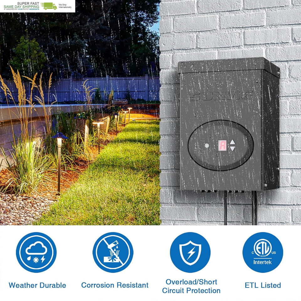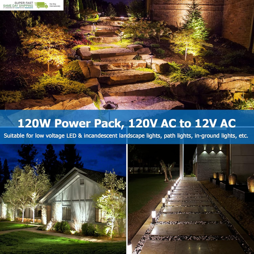 ?Compatible with All Low Voltage Lighting? SUNVIE 120W low voltage transformer is dedicated to all LED low voltage lighting. Convert 120V AC household voltage to 12V AC safe voltage, providing a safer and more stable low-voltage lighting power. Widely used in landscape lighting, path lights, pathway lights, in-ground lights, outdoor spotlight, and other outdoor lighting.