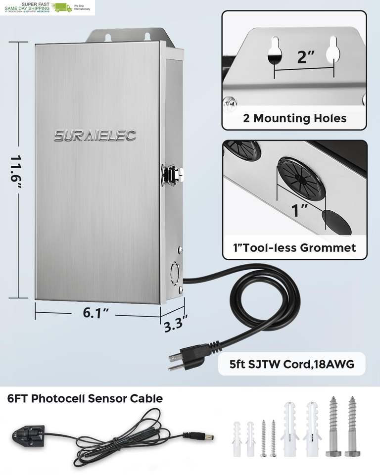 [Flexible Outdoor Installation] The detachable photo sensor, with a 6-foot cable, automatically turns your landscape lighting transformer on at dusk and off at dawn; suitable for both indoor and outdoor use, offering versatile installation options for landscape lighting