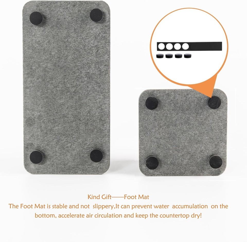 Silicone footpads boost the slip-resistance of coasters while keeping them out of the bathroom vanity. This design improves the contact surface between the diatomaceous earth coaster and the air, accelerate moisture evaporation, and prolongs the service life of the product.