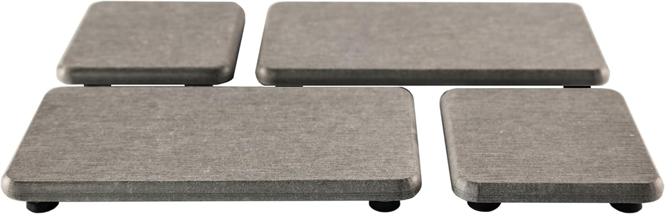 Product A Size: 3.15 inch * 3.15 inch * 0.35 inch (8cm * 8 cm * 0.9 cm); Product B Size: 6.3 inch * 3.15 inch * 0.35 inch (16cm * 8 cm * 0.9 cm) Each package included: Product A*2; Product B*2?Sandpaper*1; Manual*1; Silicone non-slip mat*16. Tray Color: Gray