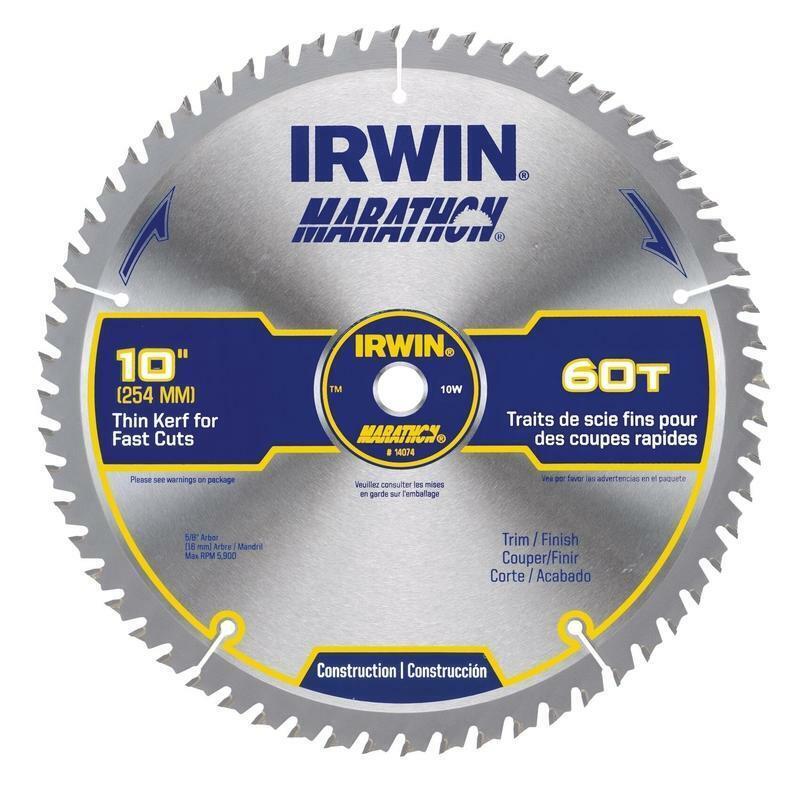 Irwin Marathon 10 in. D X 5/8 in. Carbide Miter and Table Saw Blade 60 teeth