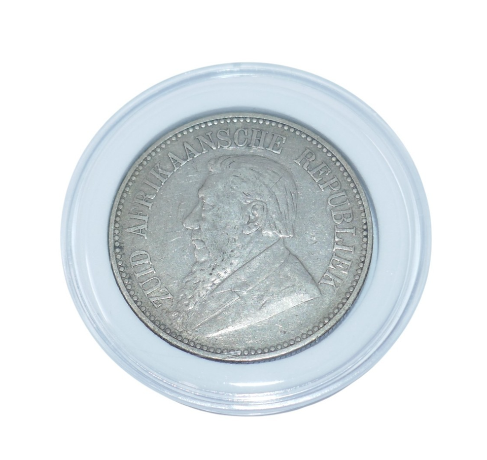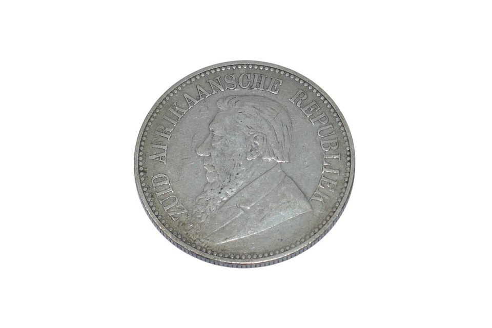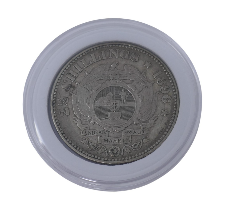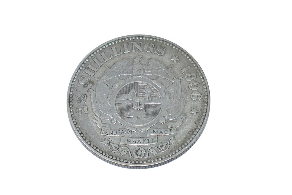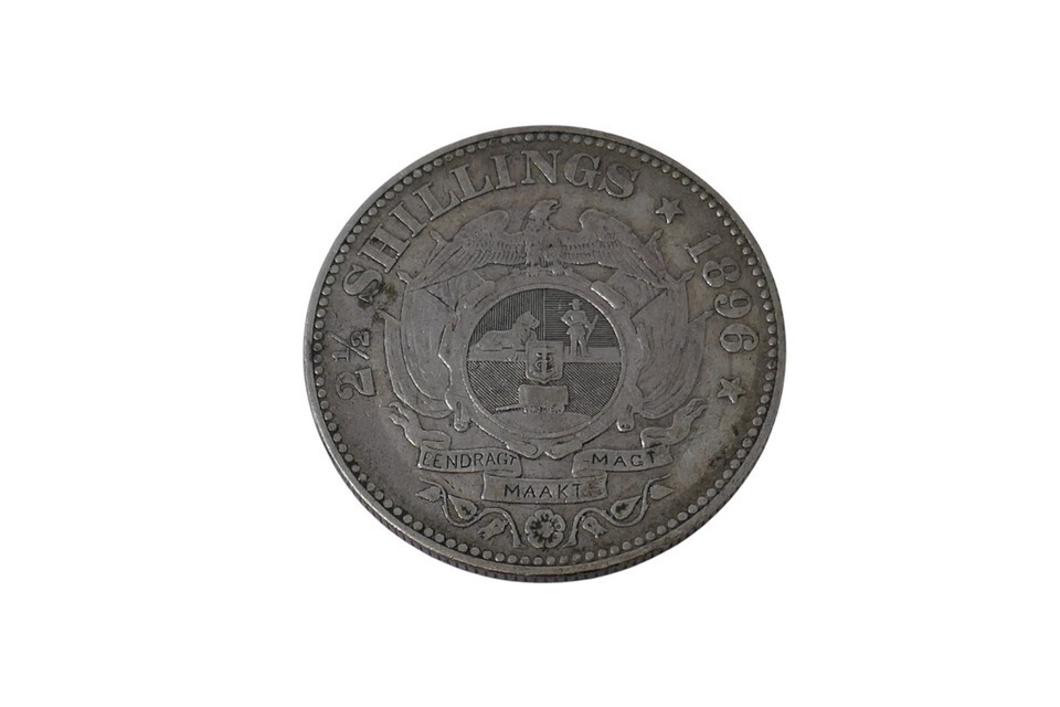 The South Africa 1896 President Johannes Paulus Kruger 2-1/2 Shillings Silver Coin is a collectible piece of currency from the late 19th century. This coin was minted in South Africa with a silver composition of 0.925 fineness and weight of 14.1 grams. Featuring the portrait of President Johannes Paulus Kruger, this coin represents a piece of history from the African country's past. Ideal for collectors of world coins, this silver coin is a tangible reminder of the presidency of Kruger in South Africa during the late 1890s.