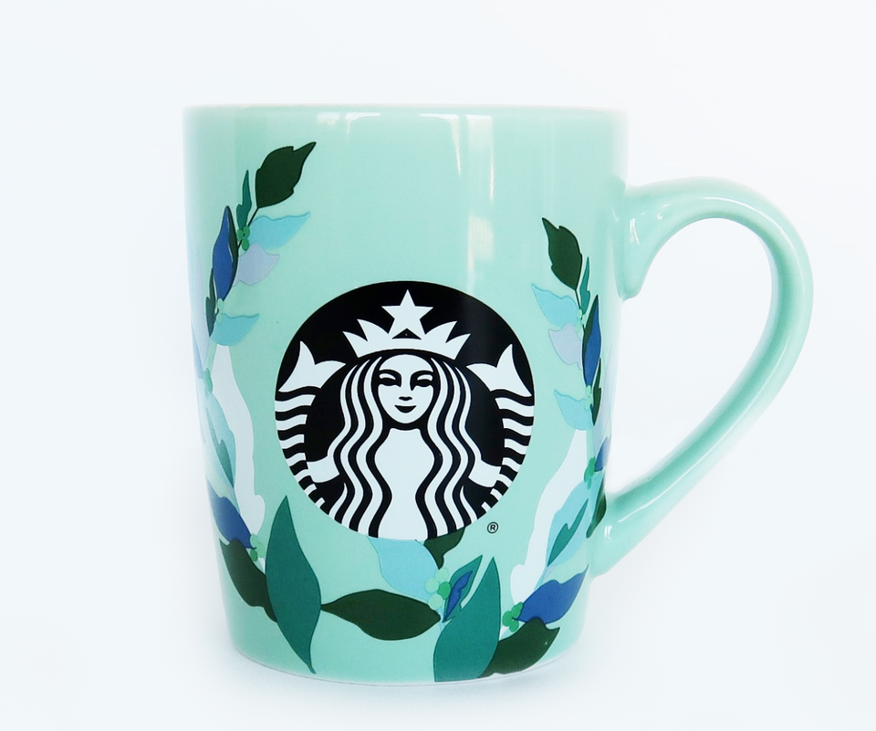 Cool green & blue plant leaf themed Starbucks 10 ounce coffee mug cup