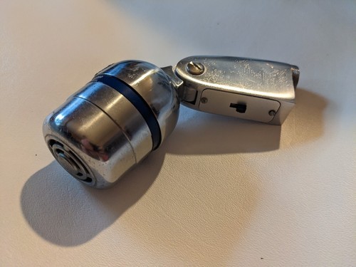 A vendre est le microphone a pole vocal dynamique DCM vintage a double impedance a charniere M-65/U d'occasion qui a ete fabrique aux Etats-Unis.