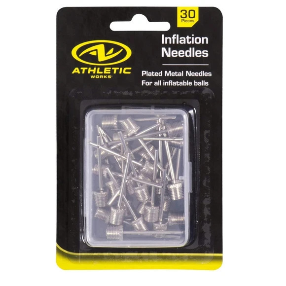 Keep your sports gear ready for action with the Athletic 30 Pack Inflation Pump Needles designed for inflating all types of balls with ease and reliability. Made from durable plated metal these universal-size needles fit most standard hand pumps and electric air pumps making them perfect for basketballs footballs soccer balls volleyballs and more. The set includes 30 high-quality needles conveniently stored in a reusable plastic case keeping them organized and easy to carry in your gym bag locker or car. Built for long-lasting performance these sturdy inflation needles are a must-have accessory for coaches athletes and families who want to keep their game balls properly inflated at all times.